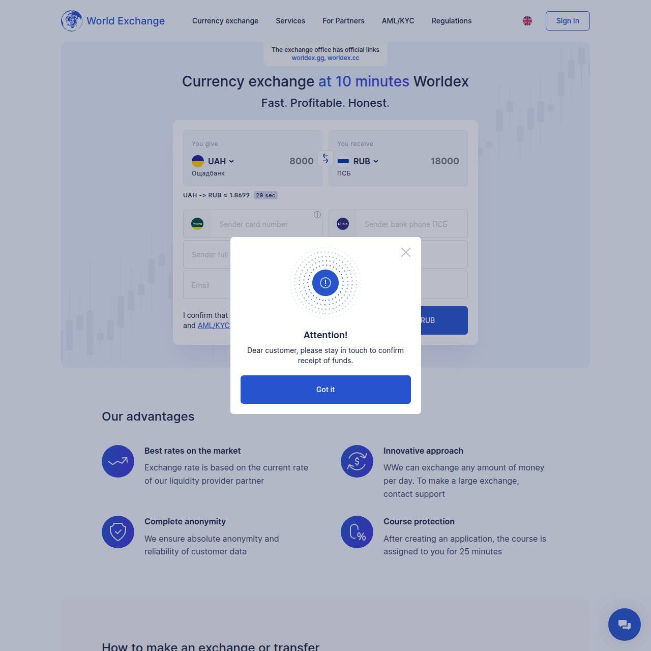 Worldex — обмен, которому доверяют. Быстро. Удобно. Без лишних шагов.