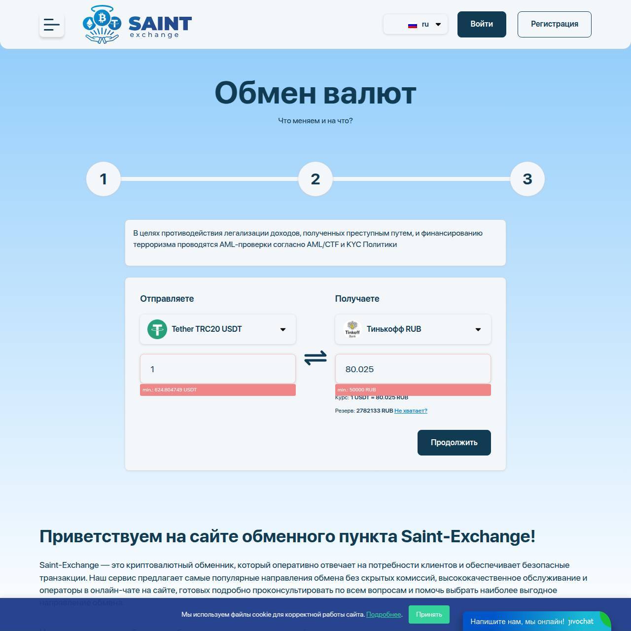 Saint-Exchange — это криптовалютный обменник, который оперативно отвечает на потребности клиентов и обеспечивает безопасные транзакции. Наш сервис предлагает самые популярные направления обмена без скрытых комиссий, высококачественное обслуживание и операторы в онлайн-чате на сайте, готовых подробно проконсультировать по всем вопросам и помочь выбрать наиболее выгодное направление обмена.