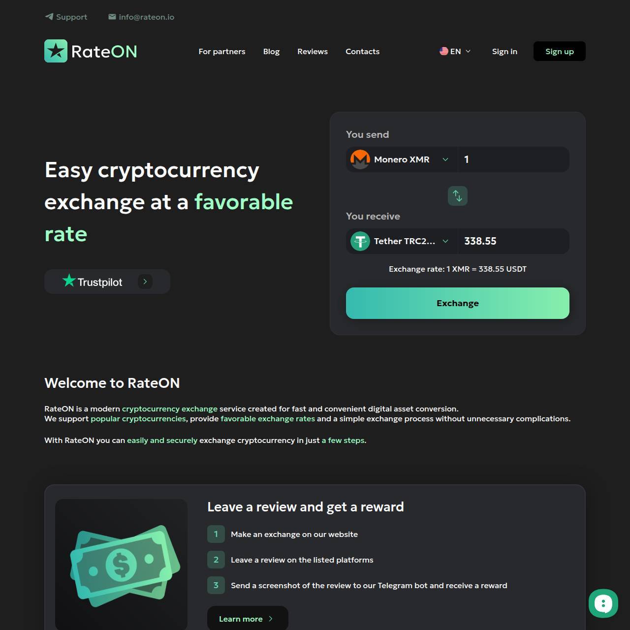 RateON — современный сервис обмена криптовалют, созданный для быстрого и удобного обмена цифровых активов.