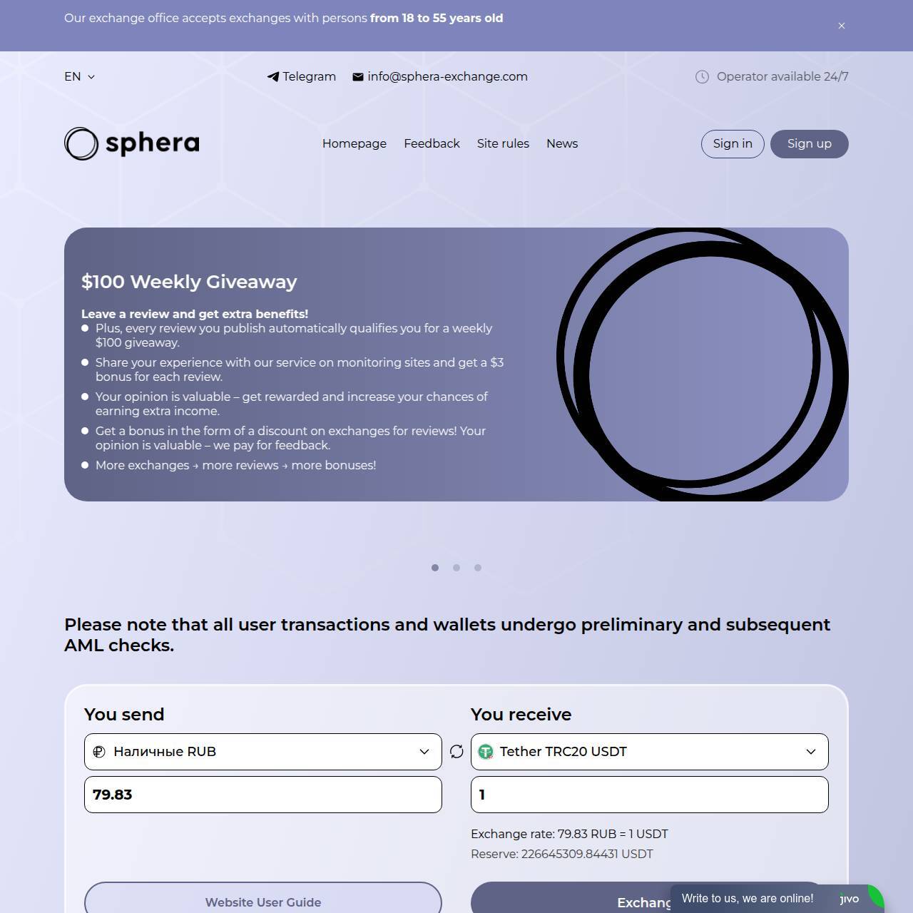Обменный сервис Sphera-Exchange.com — на рынке с 2025 года