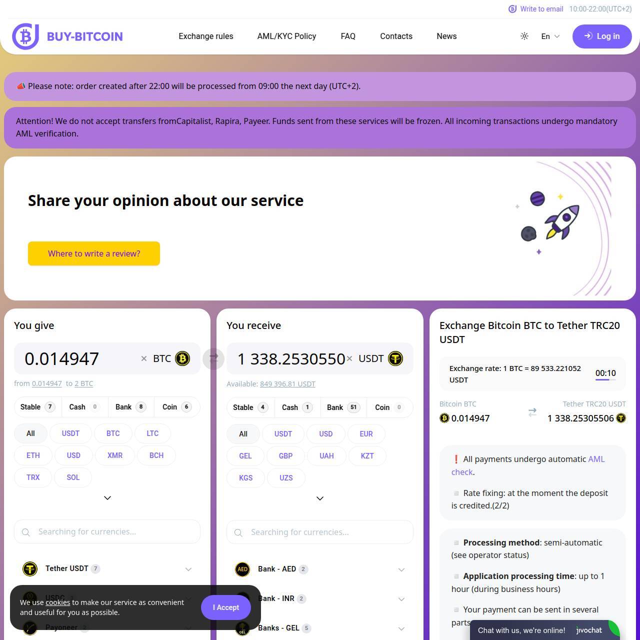 Криптообменная компания buy-bitcoin основана в 2016 году. Основное направление - сделки за наличные с индивидуальным подходом.