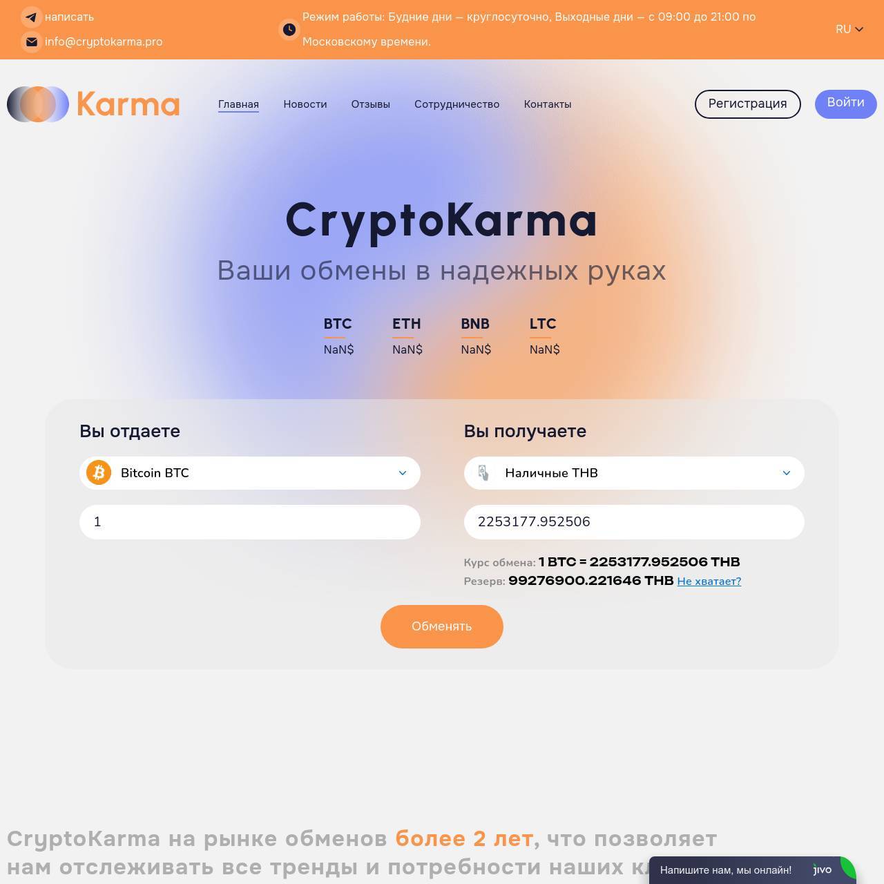 CryptoKarma на рынке обменов более 2 лет, что позволяет нам отслеживать все тренды и потребности наших клиентов и предоставлять наилучшие условия.