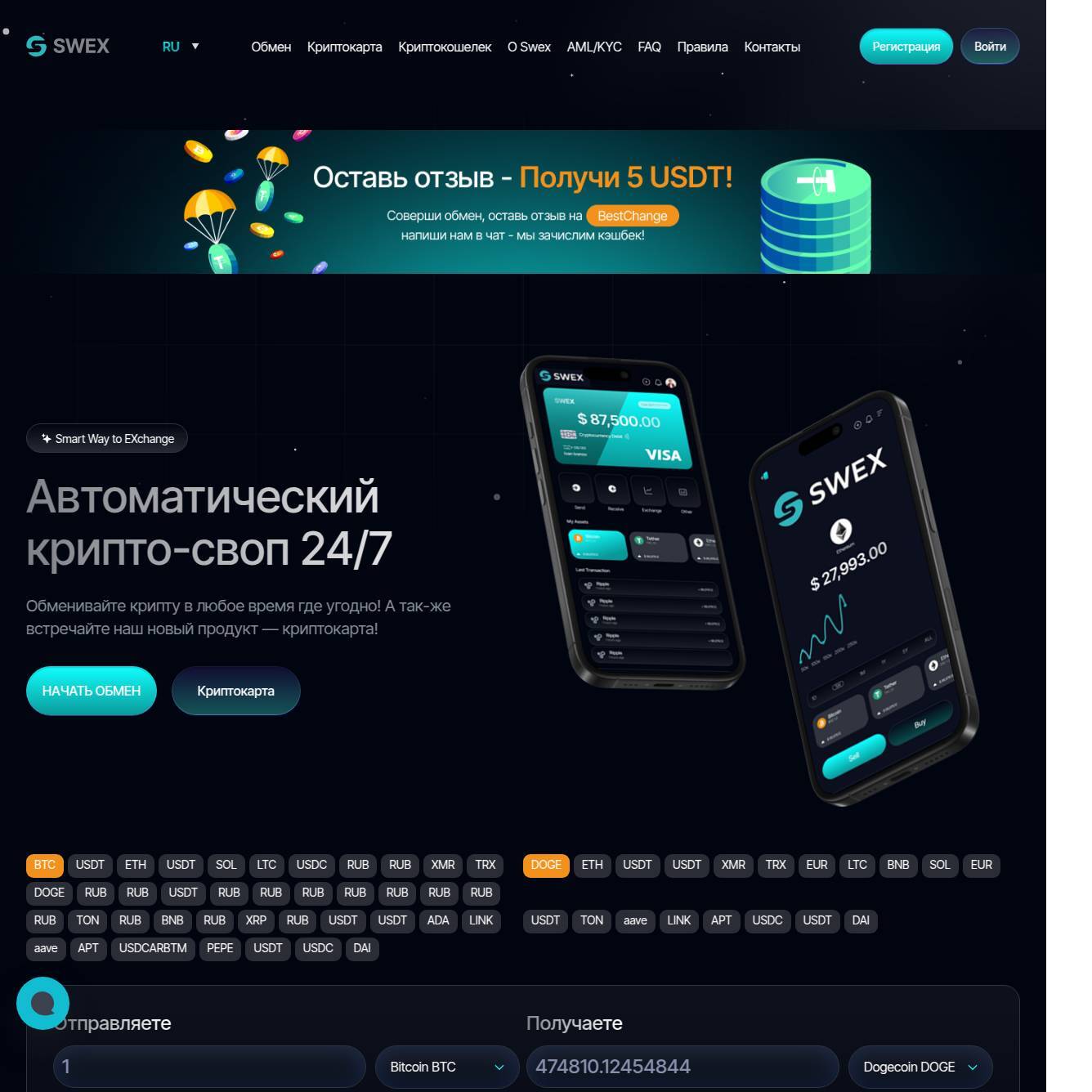 Мы предлагаем простой интерфейс, честные курсы и высокий уровень надежности. Платформа работает круглосуточно без выходных, обеспечивая моментальные операции со всеми популярными цифровыми активами.