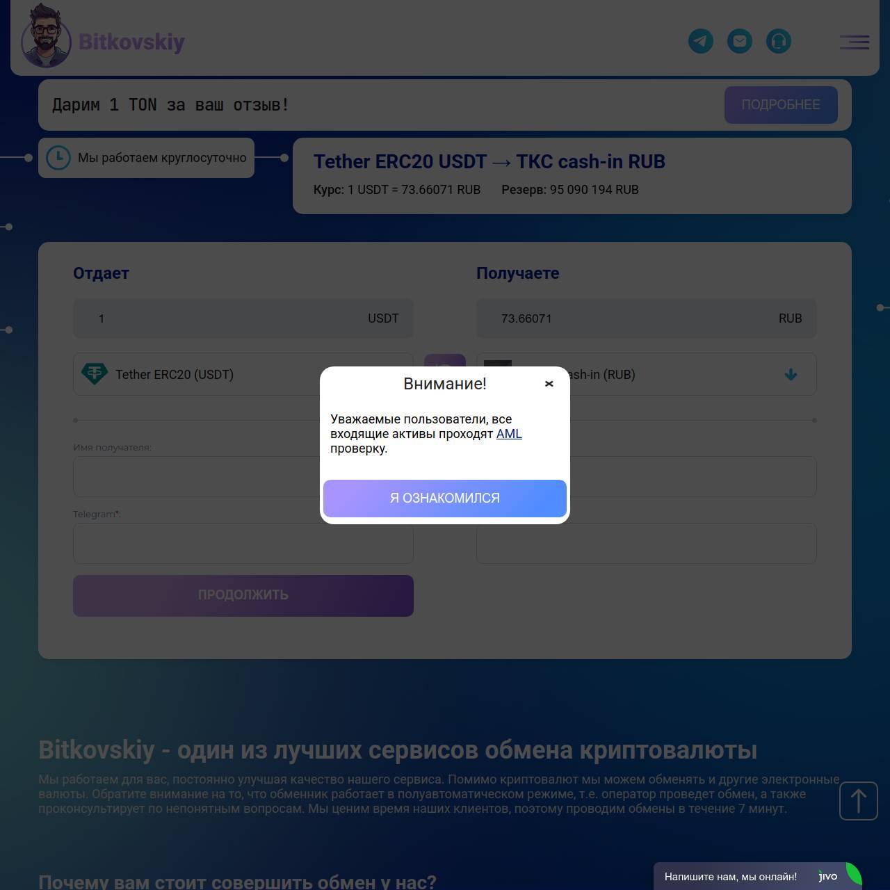 Bitkovskiy - один из лучших сервисов обмена криптовалюты