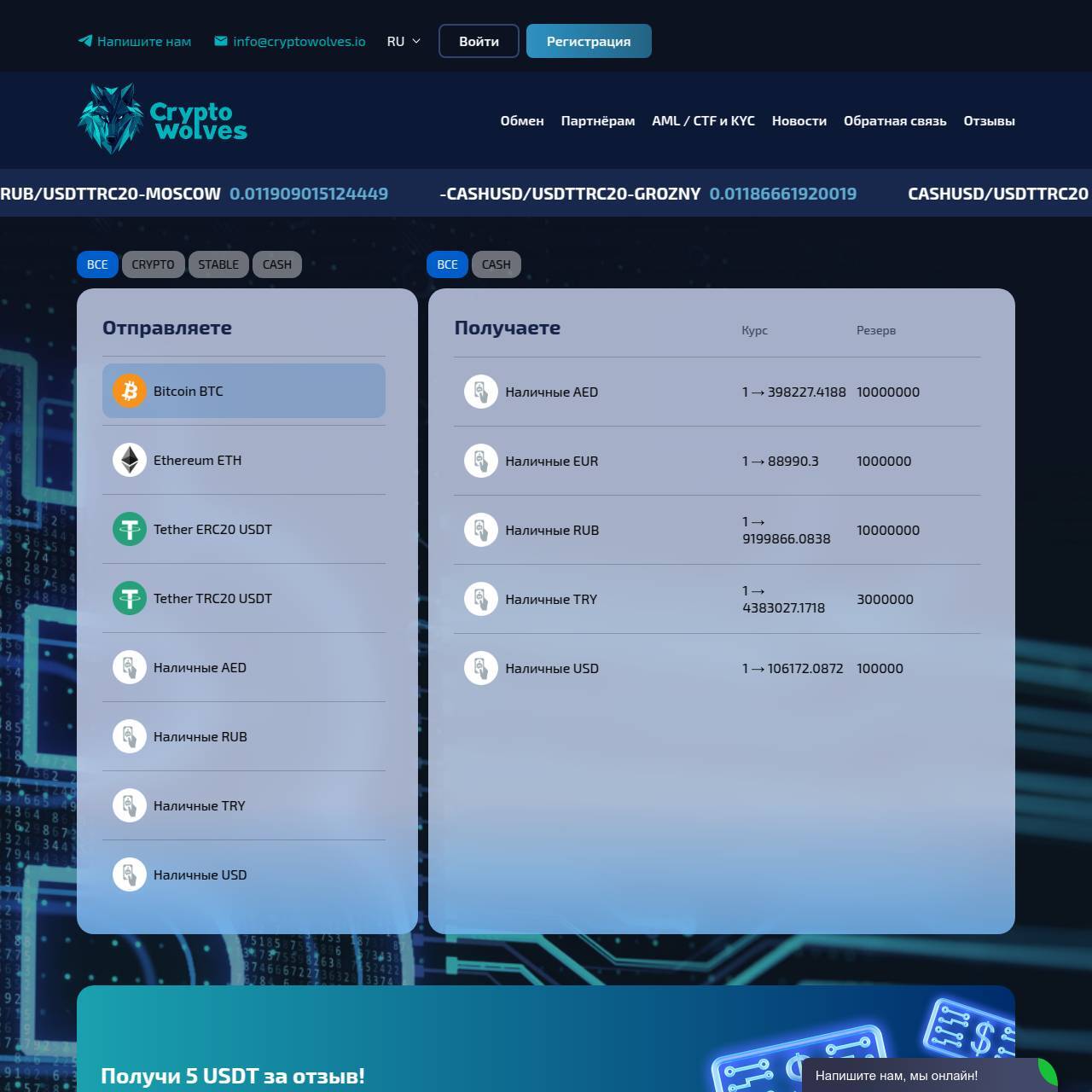 Наш обменный сервис предоставляет удобные и безопасные условия для проведения операций с цифровыми активами. Мы предлагаем обмен криптовалютных пар с USDT, Bitcoin BTC, наличными RUB, AED, USD.