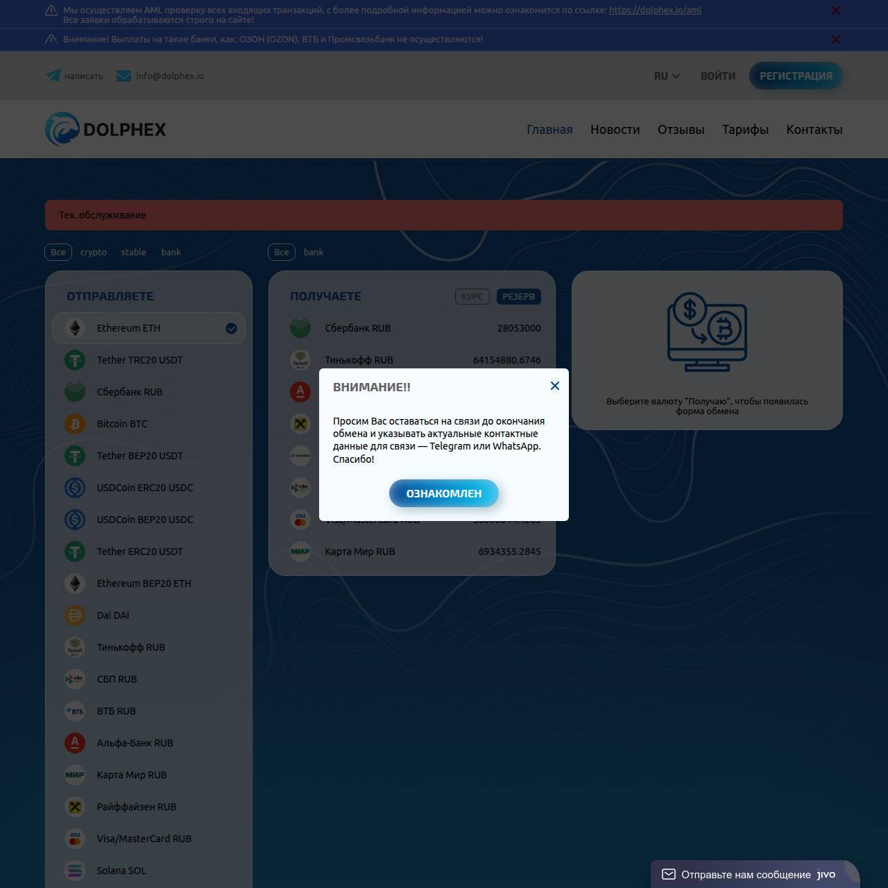 Онлайн-обменник Dolphex.io предлагает всем желающим осуществить обмен у себя на странице, позволяя менять криптовалюту на фиатные средства, , покупать цифровые активы, например купить и продать Bitcoin, многое другое.