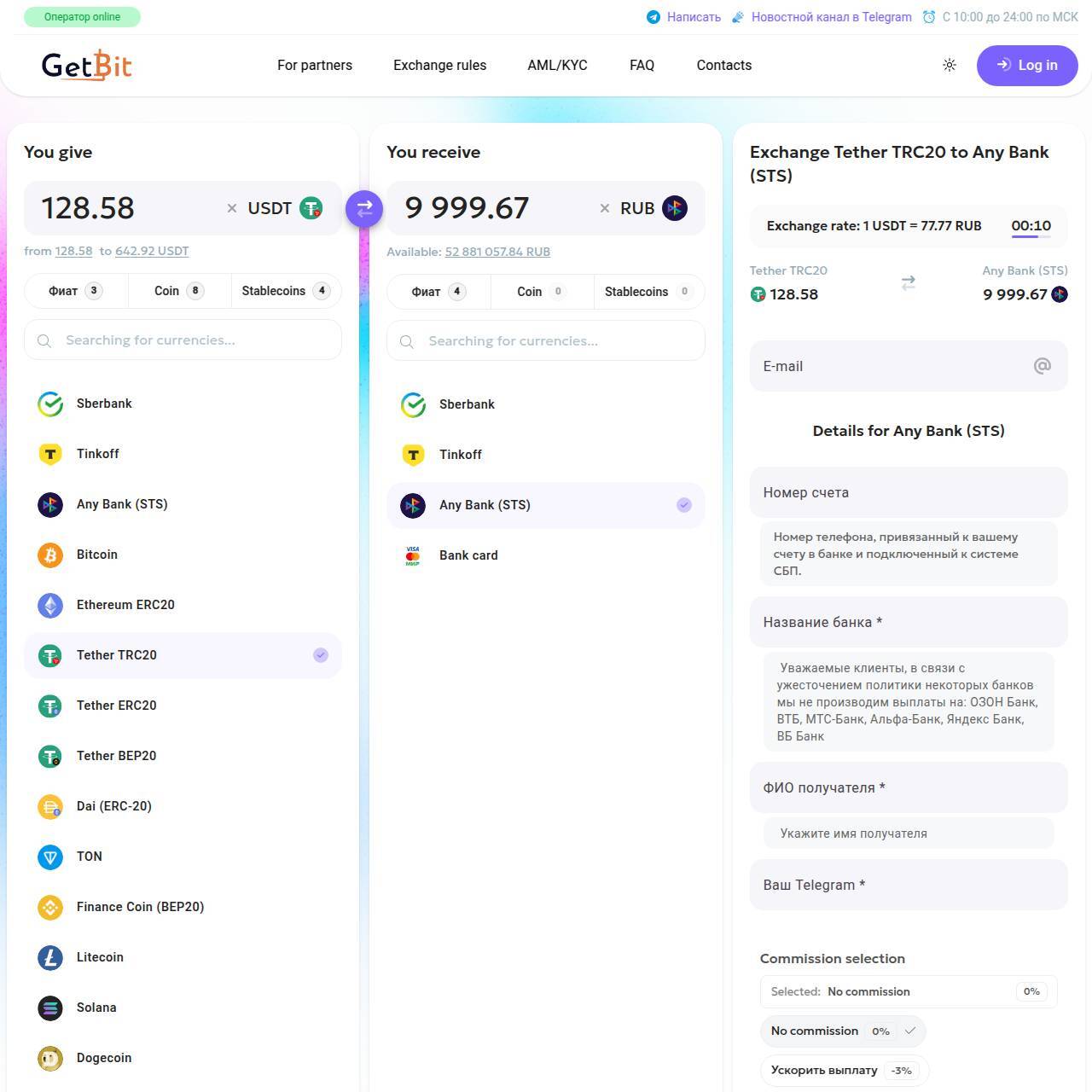 Доброго времени суток! С радостью представляем вам наш обменный сервис getbit.exchange. Мы постарались сделать его максимально простым и удобным для использования. Мы прислушиваемся к отзывам наших клиентов и постоянно работаем над улучшением сервиса.