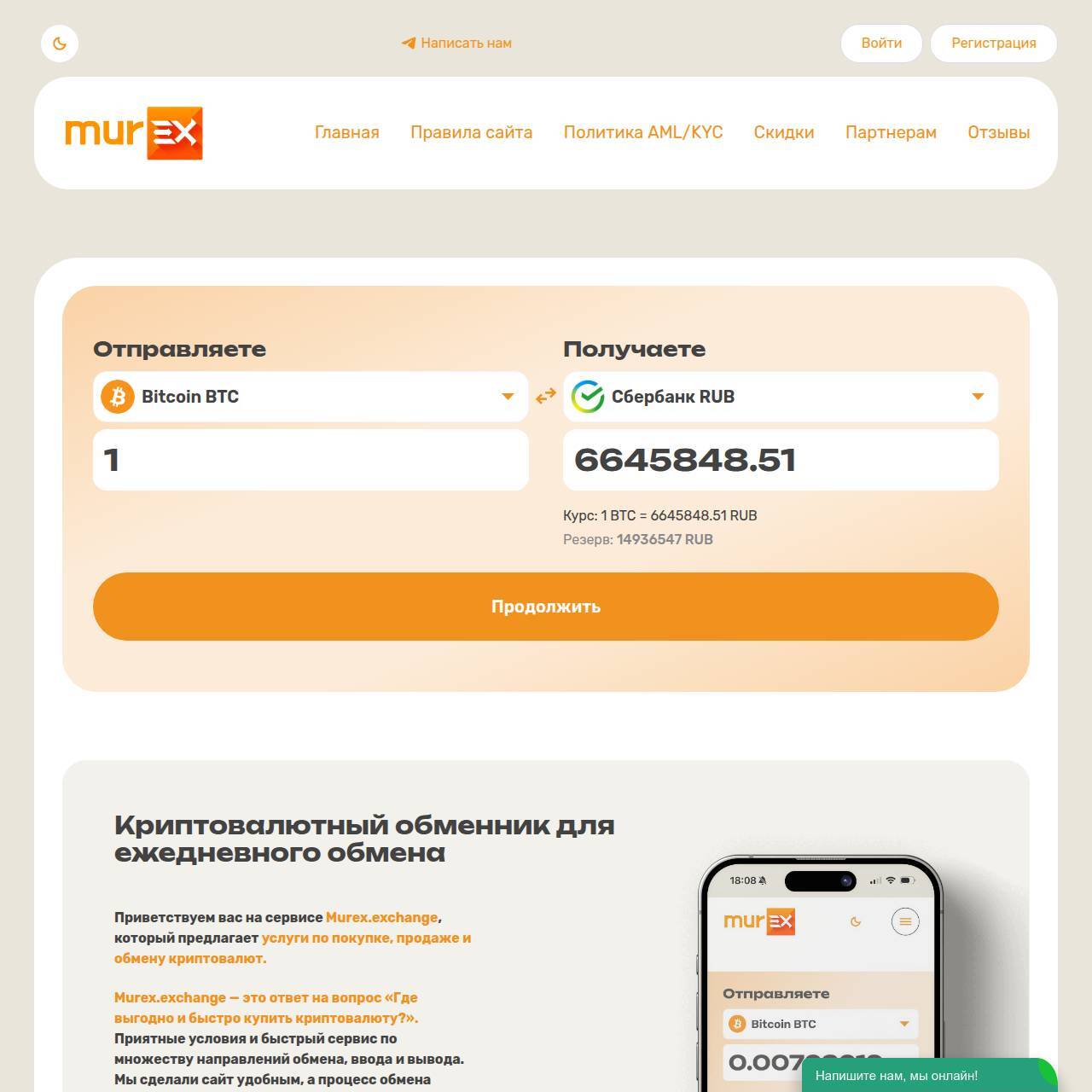 Приветствуем вас на сервисе Murex.exchange, который предлагает услуги по покупке, продаже и обмену криптовалют.